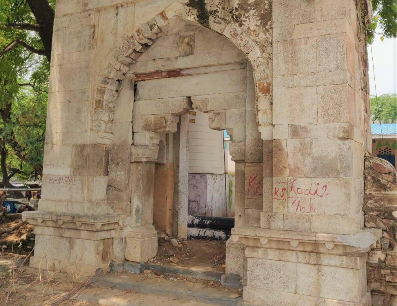A 15th Century Lodi Era mosque sitting just in front of the hustling and bustling market of Mehrauli. This is an active and functioning mosque, but its structure is deteriorating with time. One side wall is leaning outwards, threatening to fall on the main street. Locals talk of restoring this mosque to its previous glory.